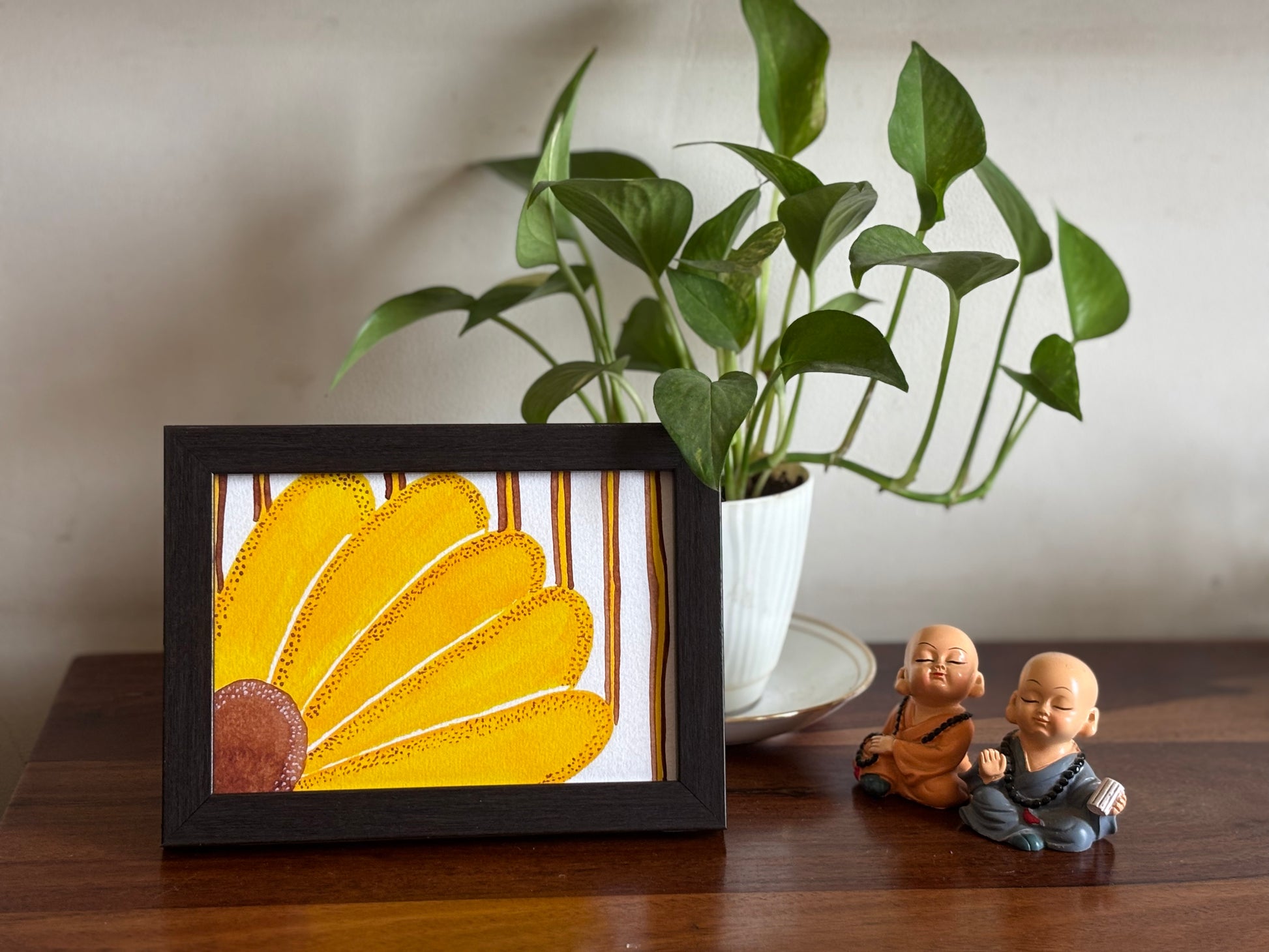 An original watercolour, this art print is available on 310 gsm Hahnemuhle German Etching Textured Fine Art Paper with archival-grade inks to ensure longevity. This artwork comes in a black frame and no glass so that you can enjoy its texture and colours without reflections hampering your view. Perfect for gifting or building your art collection.